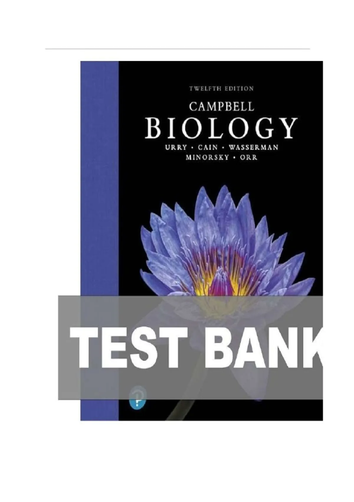 TEST BANK FOR Campbell Biology 12th Edition by Urry ISBN: 978-0135188743 COMPLETE GUIDE ALL CHAPTERS COVERED 100% VERIFIED A+ GRADE ASSURED!!!!!NEW LATEST UPDATE !!!!!!