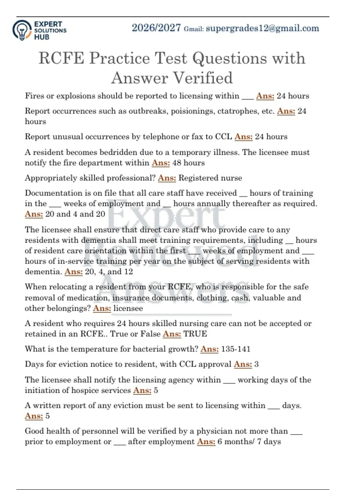 RCFE Practice Test Questions with Answer Verified RCFE Practice Test Questions with Answer Verified