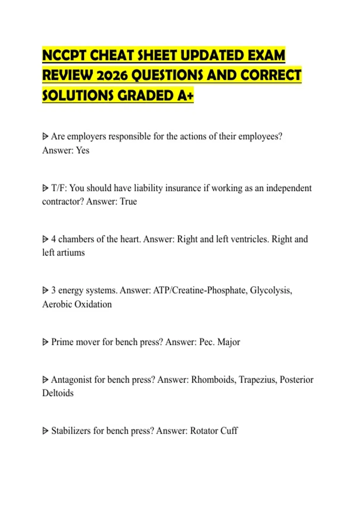 NCCPT CHEAT SHEET UPDATED EXAM REVIEW 2026 QUESTIONS AND CORRECT SOLUTIONS GRADED A+