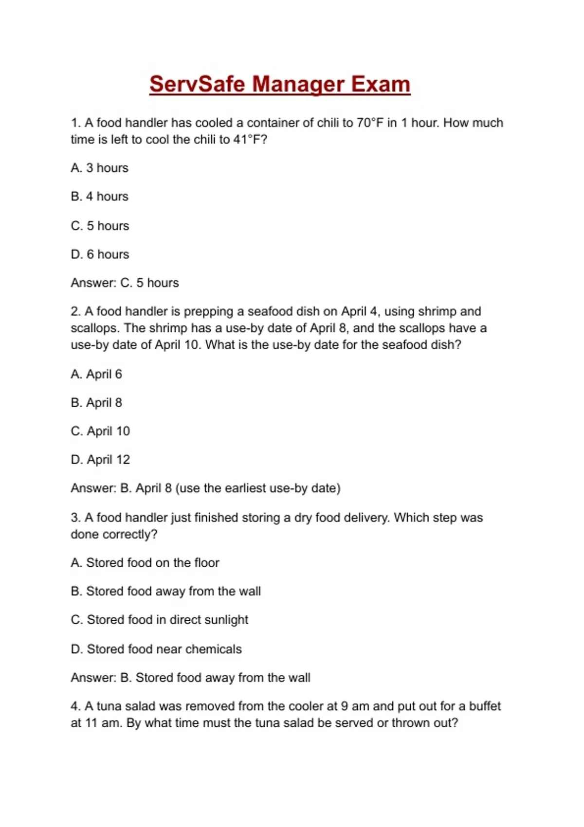 1. A food handler has cooled a container of chili to 70°F in 1 hour. How much