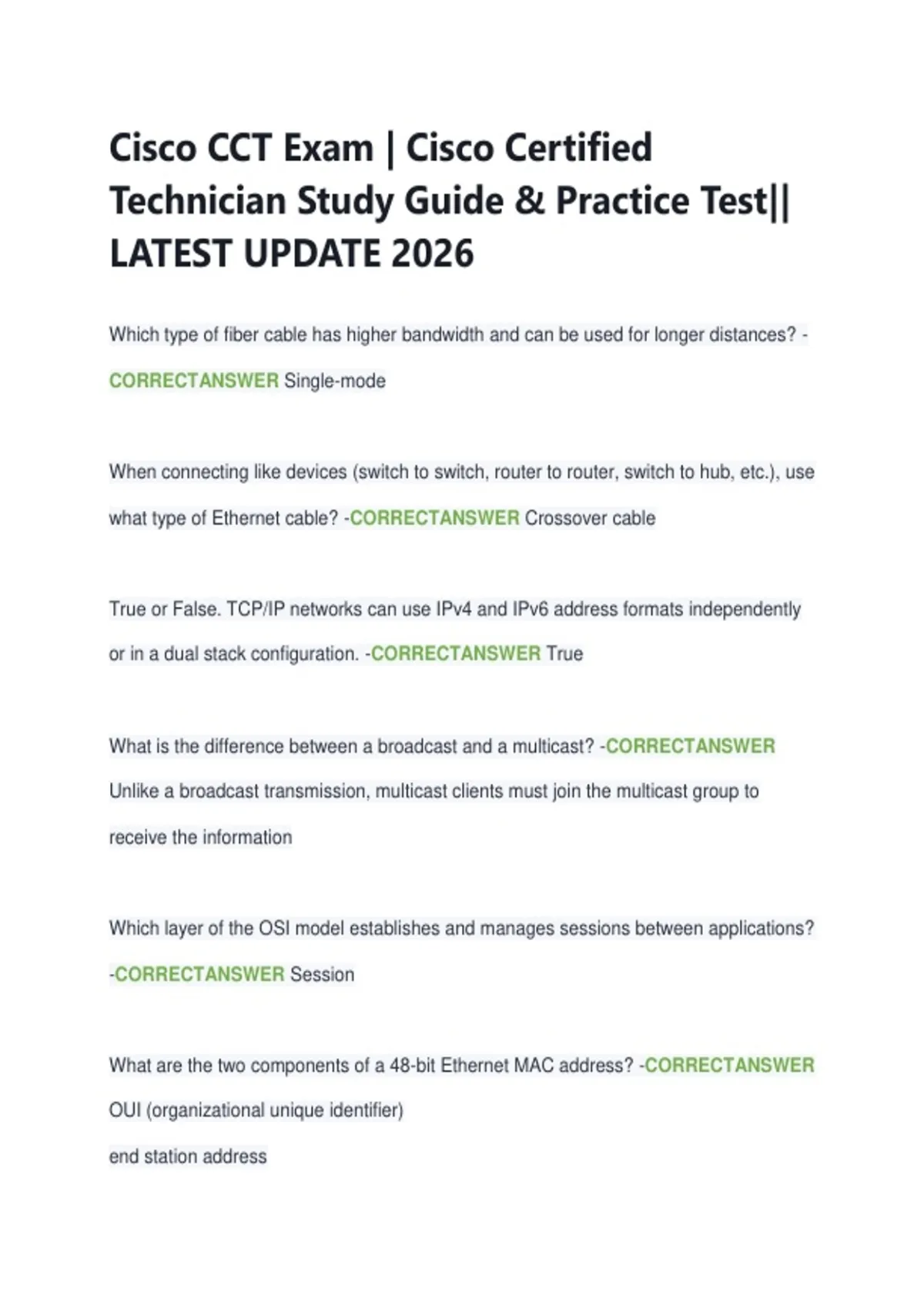 Cisco CCT Exam | Cisco Certified Technician Study Guide & Practice Test|| LATEST UPDATE 2026