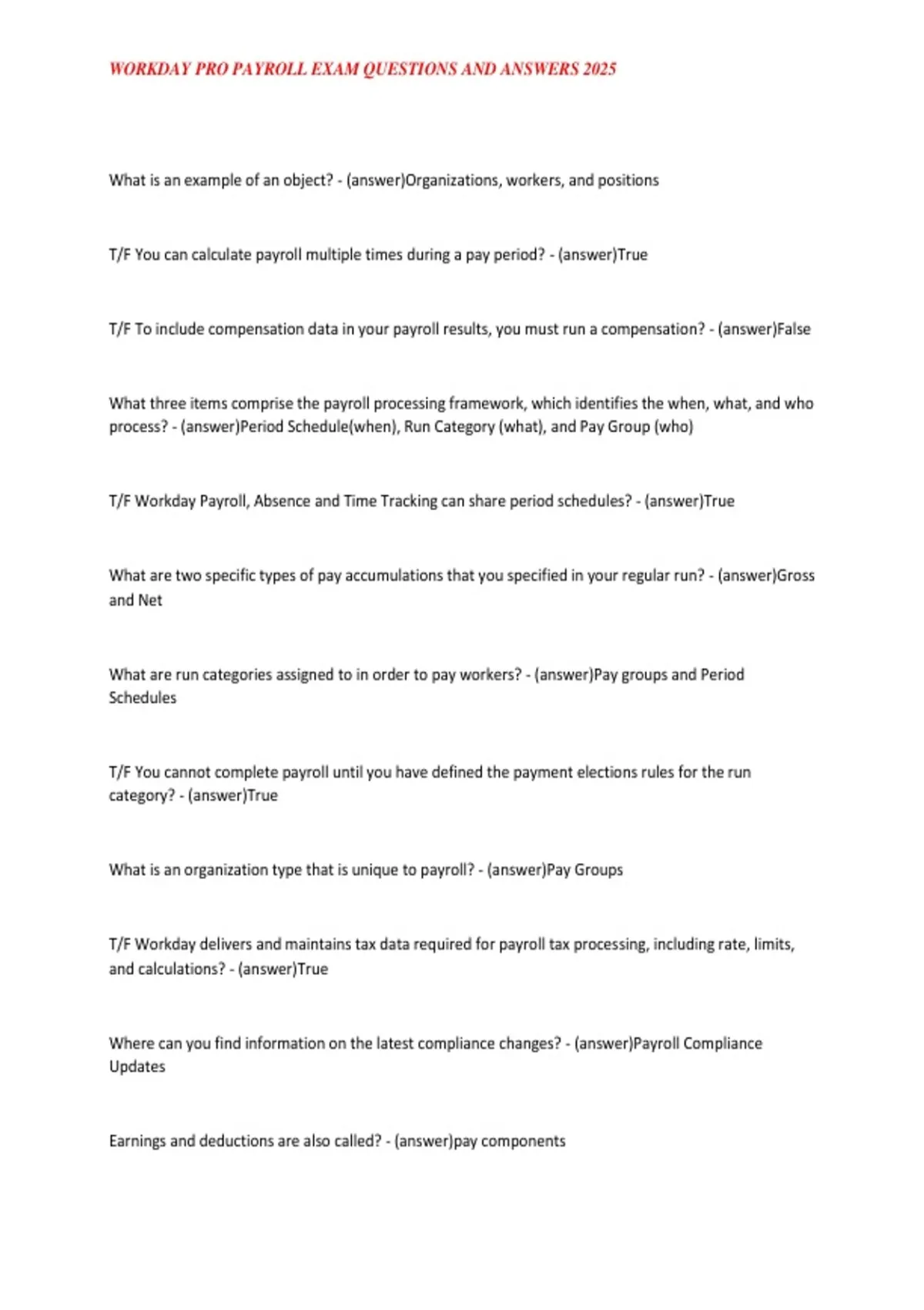 ,WORKDAY PRO PAYROLL EXAM QUESTIONS AND ANSWERS 2025