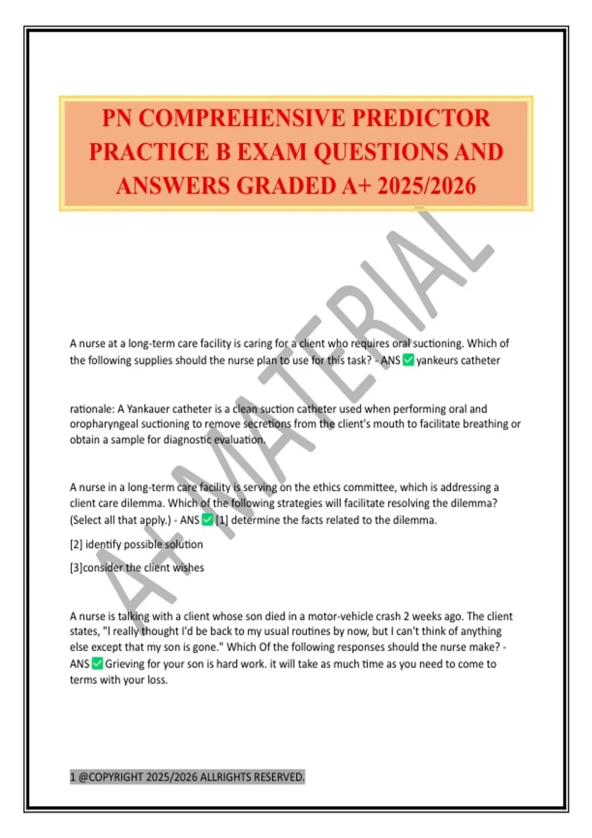 PN COMPREHENSIVE PREDICTOR PRACTICE B EXAM QUESTIONS AND ANSWERS GRADED A+ 2025/2026