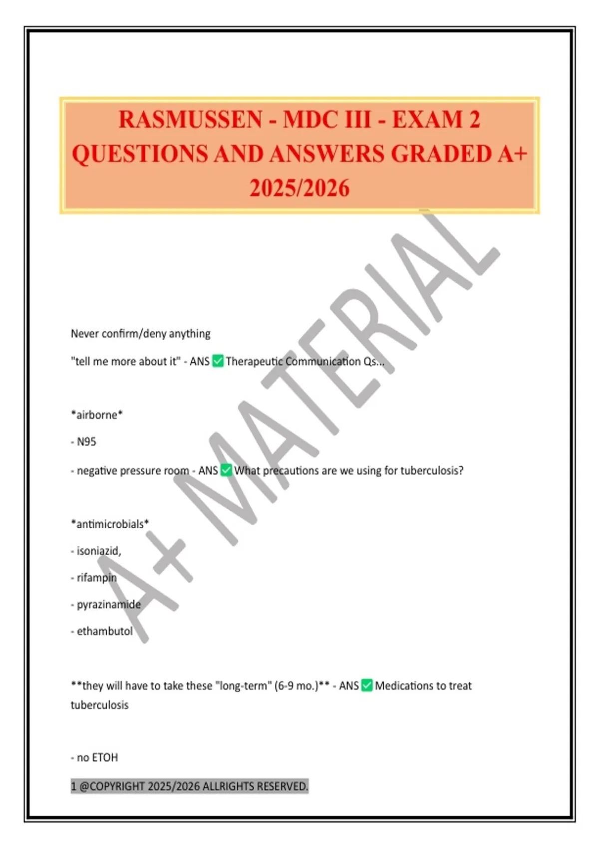 RASMUSSEN - MDC III - EXAM 2 QUESTIONS AND ANSWERS GRADED A+ 2025/2026