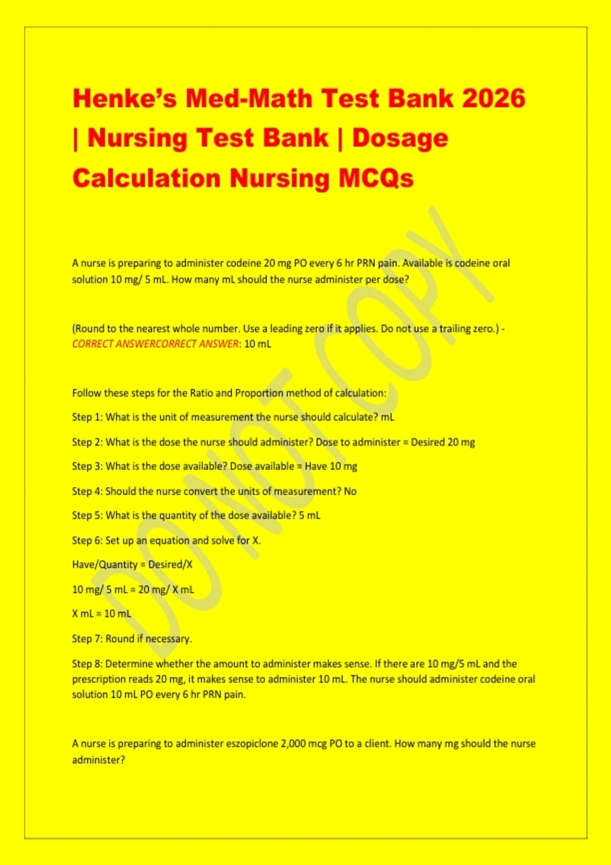 Henke’s Med-Math Test Bank 2026 | Nursing Test Bank | Dosage Calculation Nursing MCQs