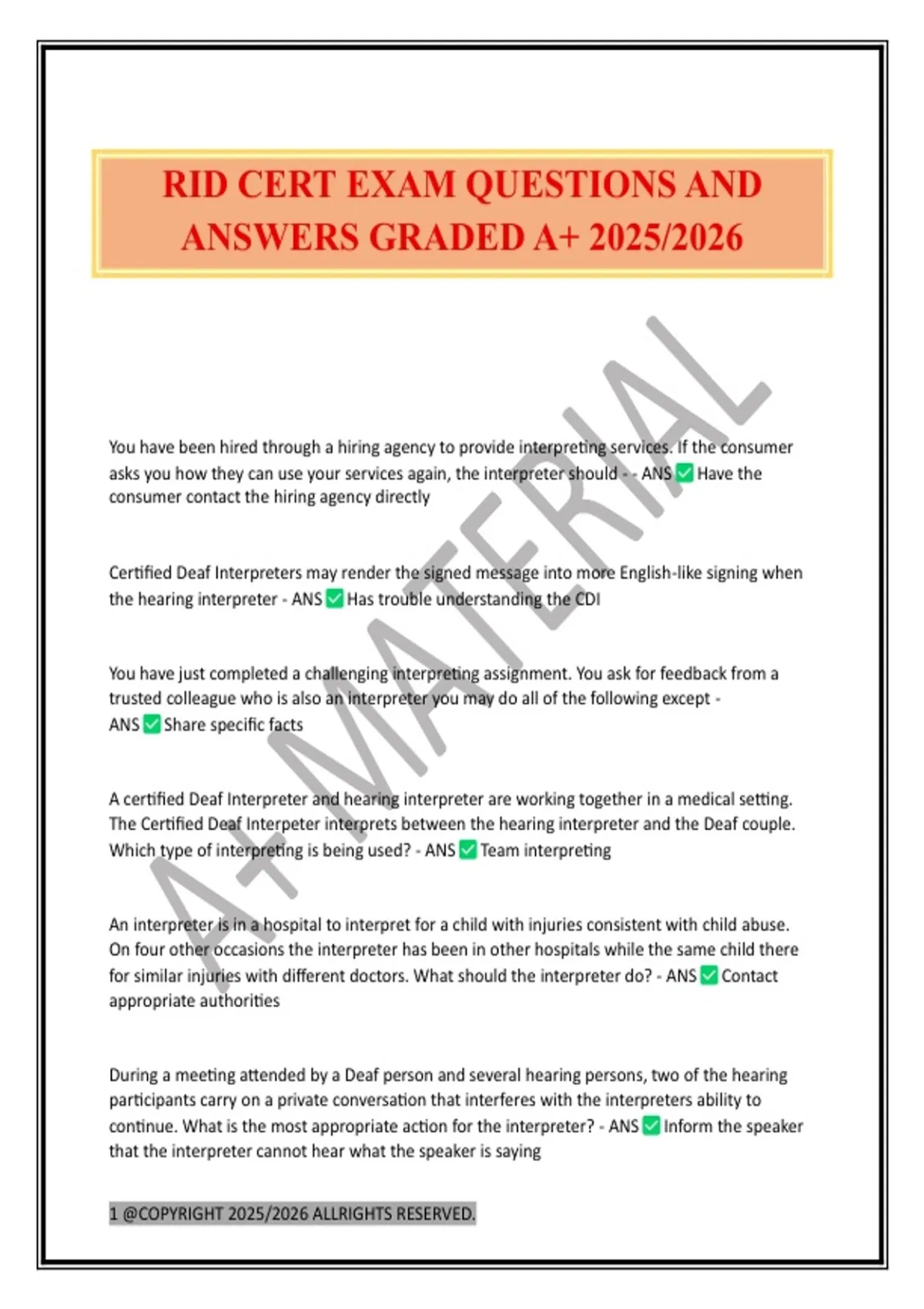 RID CERT EXAM QUESTIONS AND ANSWERS GRADED A+ 2025/2026