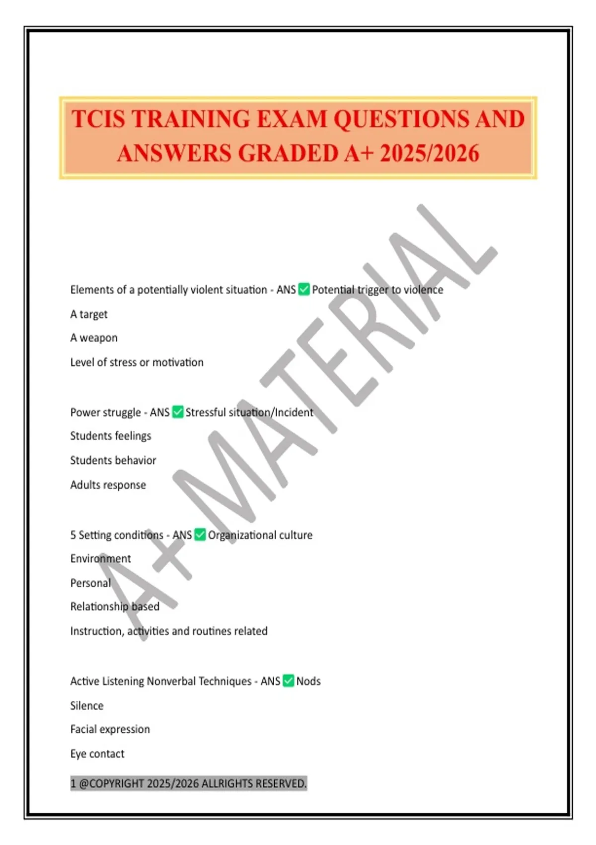TCIS TRAINING EXAM QUESTIONS AND