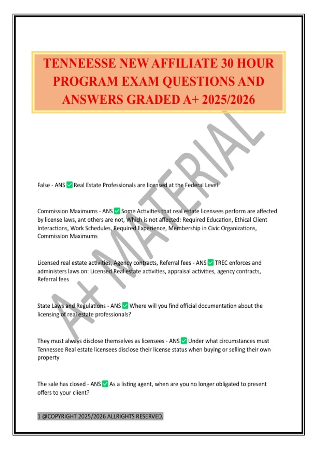 TENNEESSE NEW AFFILIATE 30 HOUR PROGRAM EXAM QUESTIONS AND ANSWERS GRADED A+ 2025/2026