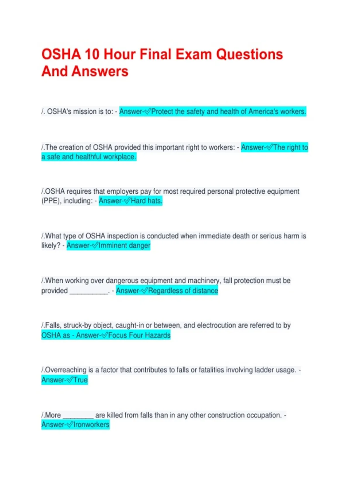 /.The creation of OSHA provided this important right to workers: - Answer-✅The right to