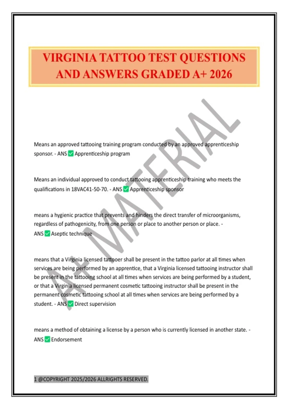 VIRGINIA TATTOO TEST QUESTIONS