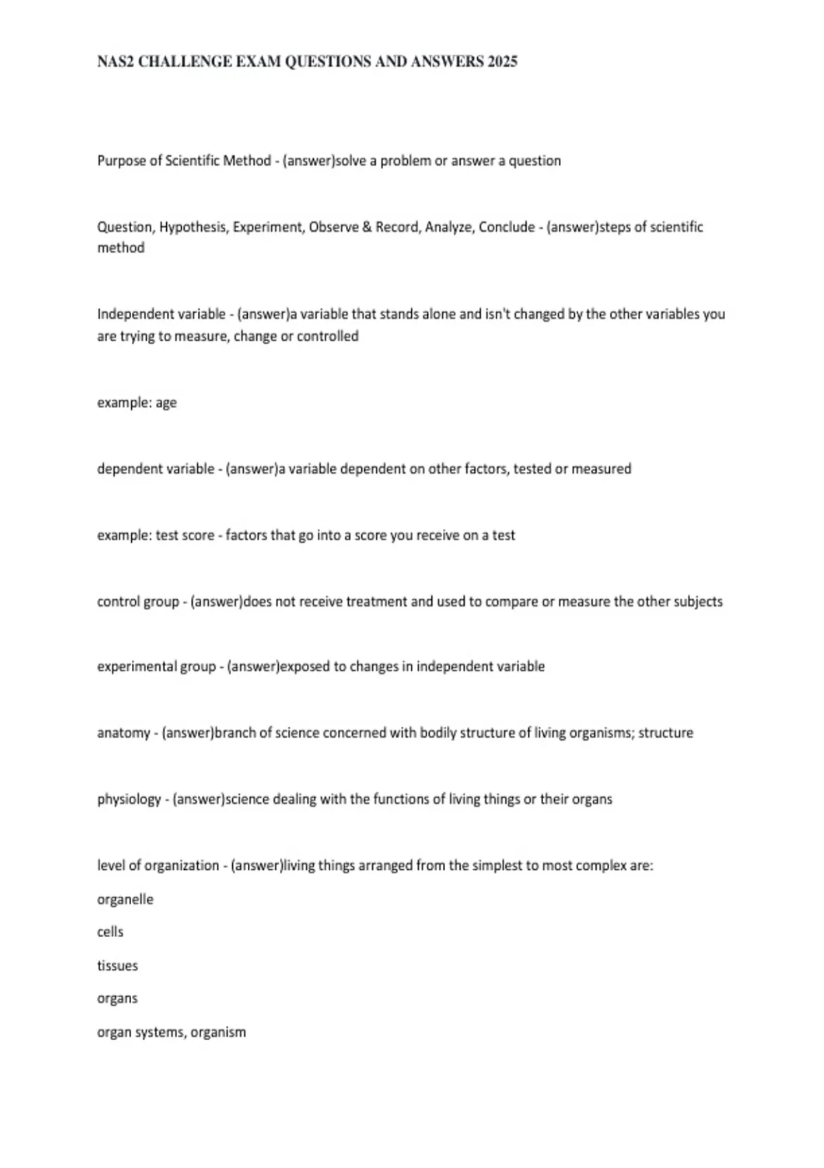 , NAS2 CHALLENGE EXAM QUESTIONS AND ANSWERS 2025