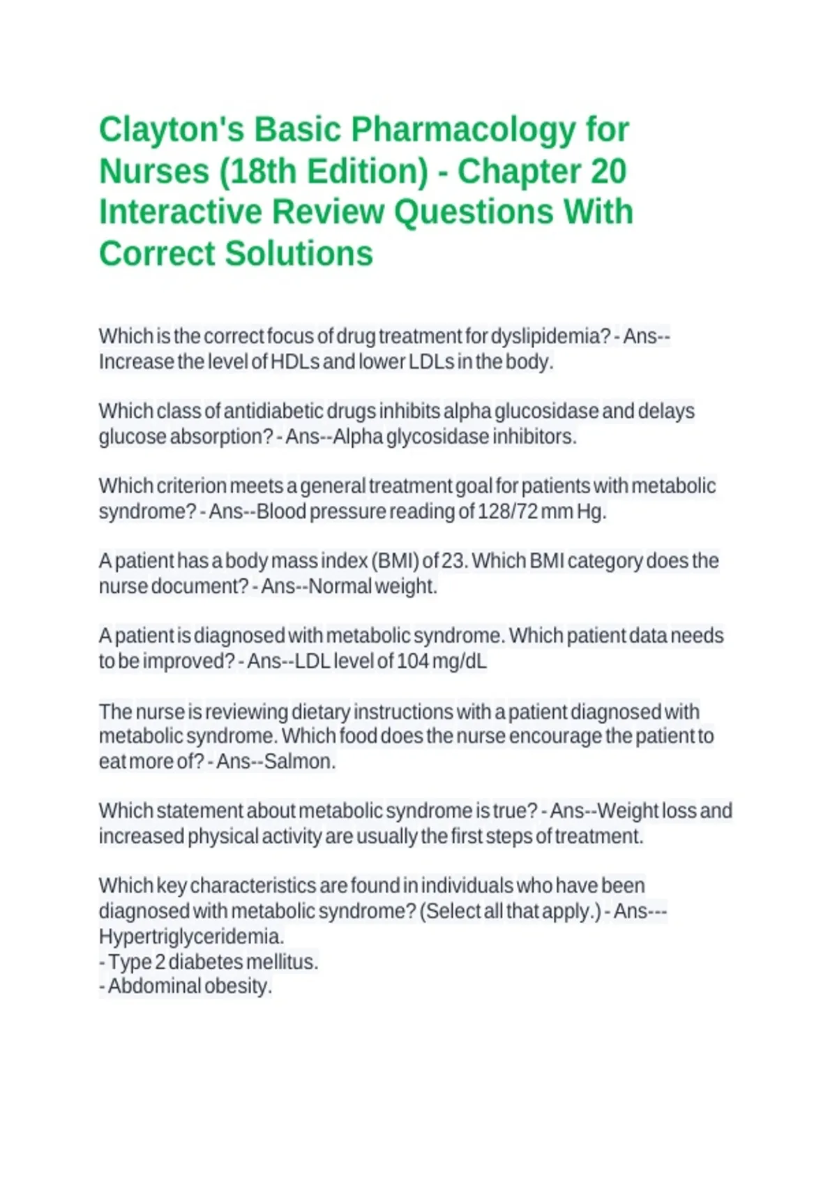 diagnosed with metabolic syndrome? (Select all that apply.) - Ans---