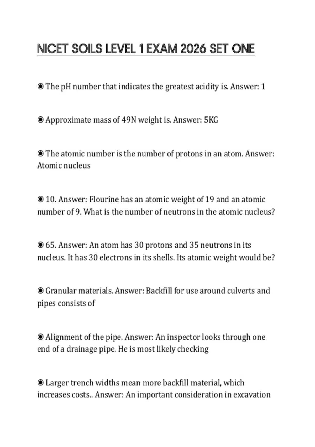 ◉ Granular materials. Answer: Backfill for use around culverts and