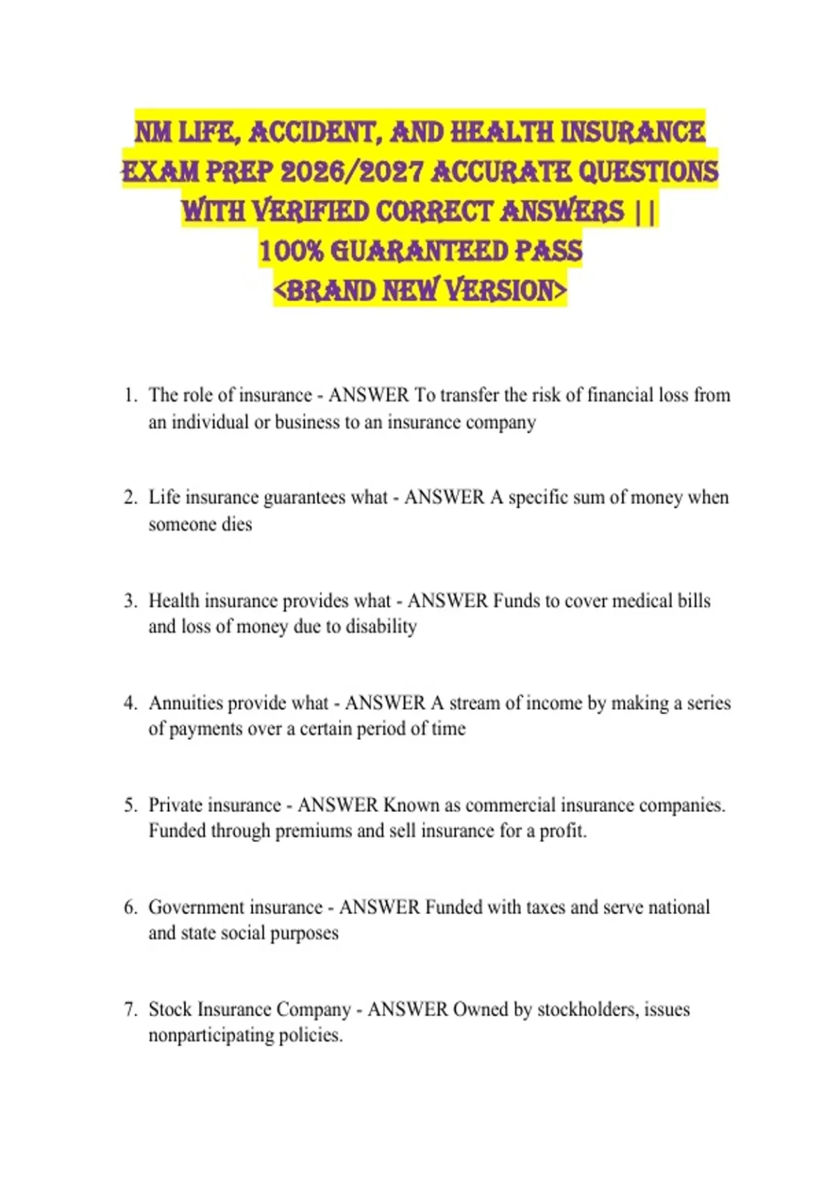 EXAM PREP 2026/2027 ACCURATE QUESTIONS