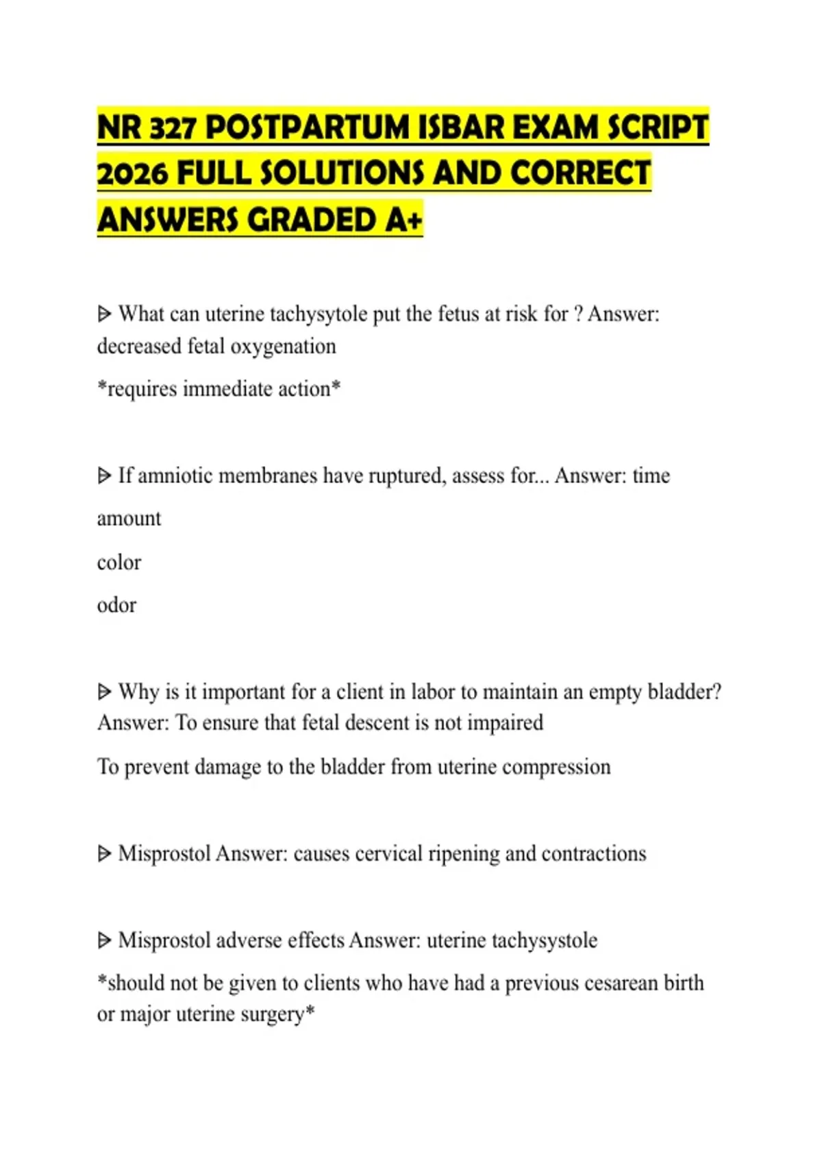 ⩥ Misprostol Answer: causes cervical ripening and contractions