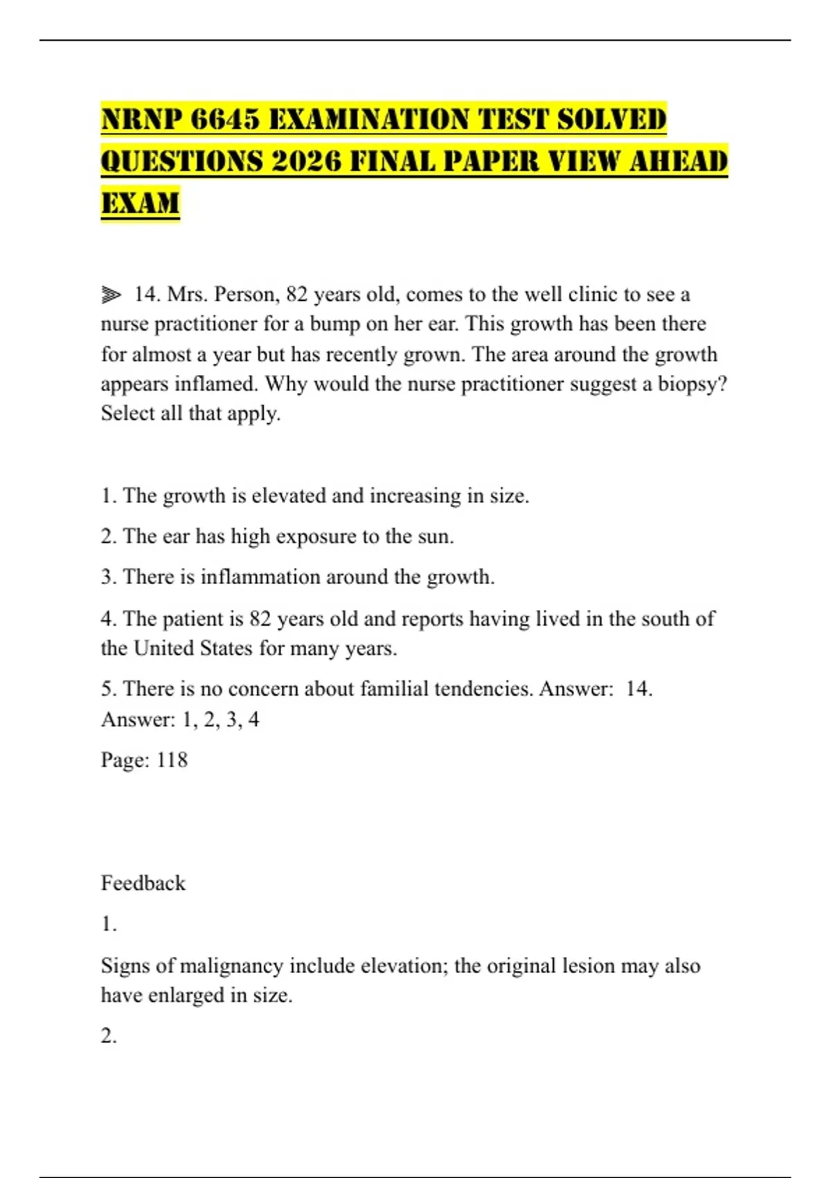 ⫸ 14. Mrs. Person, 82 years old, comes to the well clinic to see a