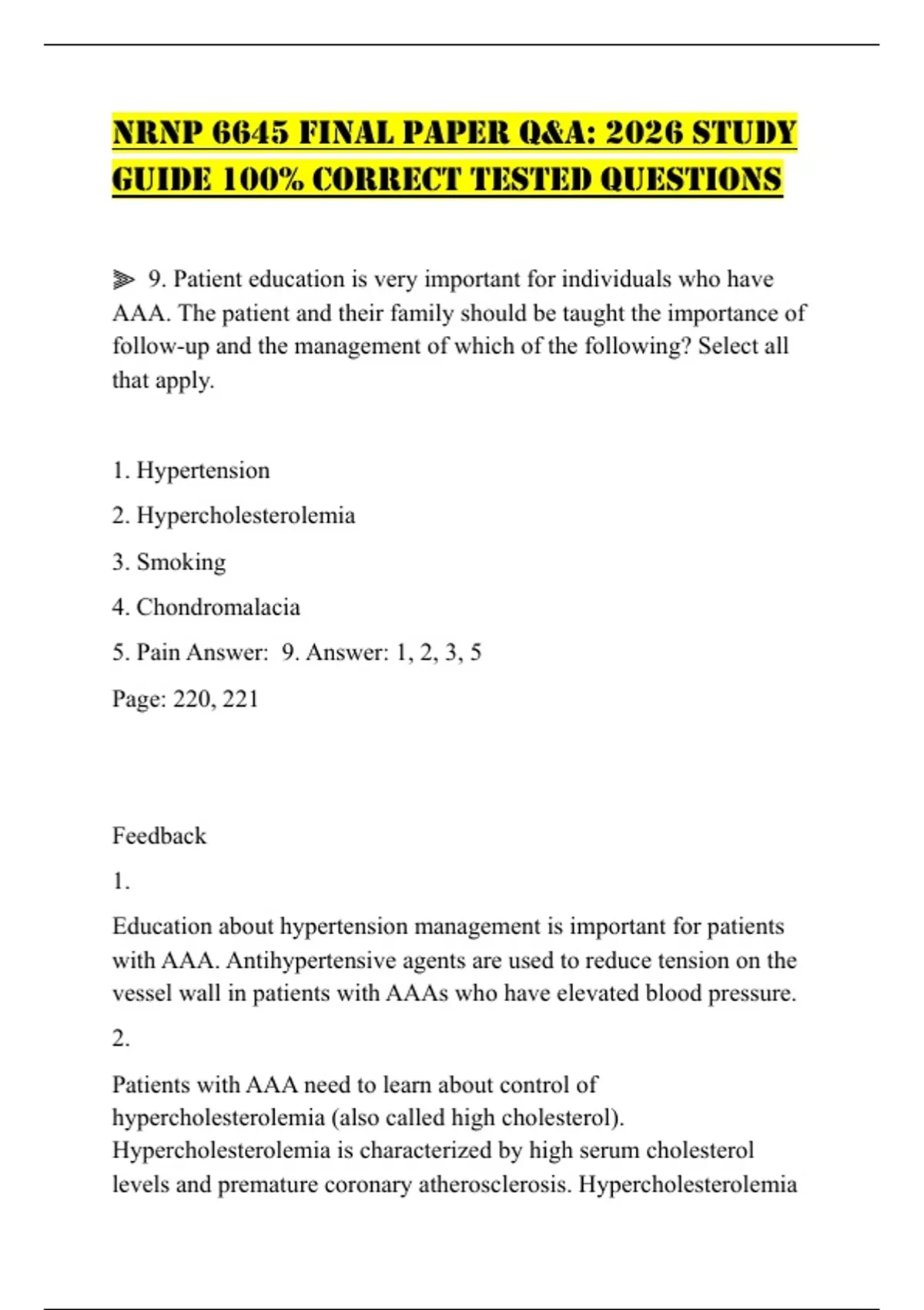 NRNP 6645 FINAL PAPER Q&A: 2026 STUDY