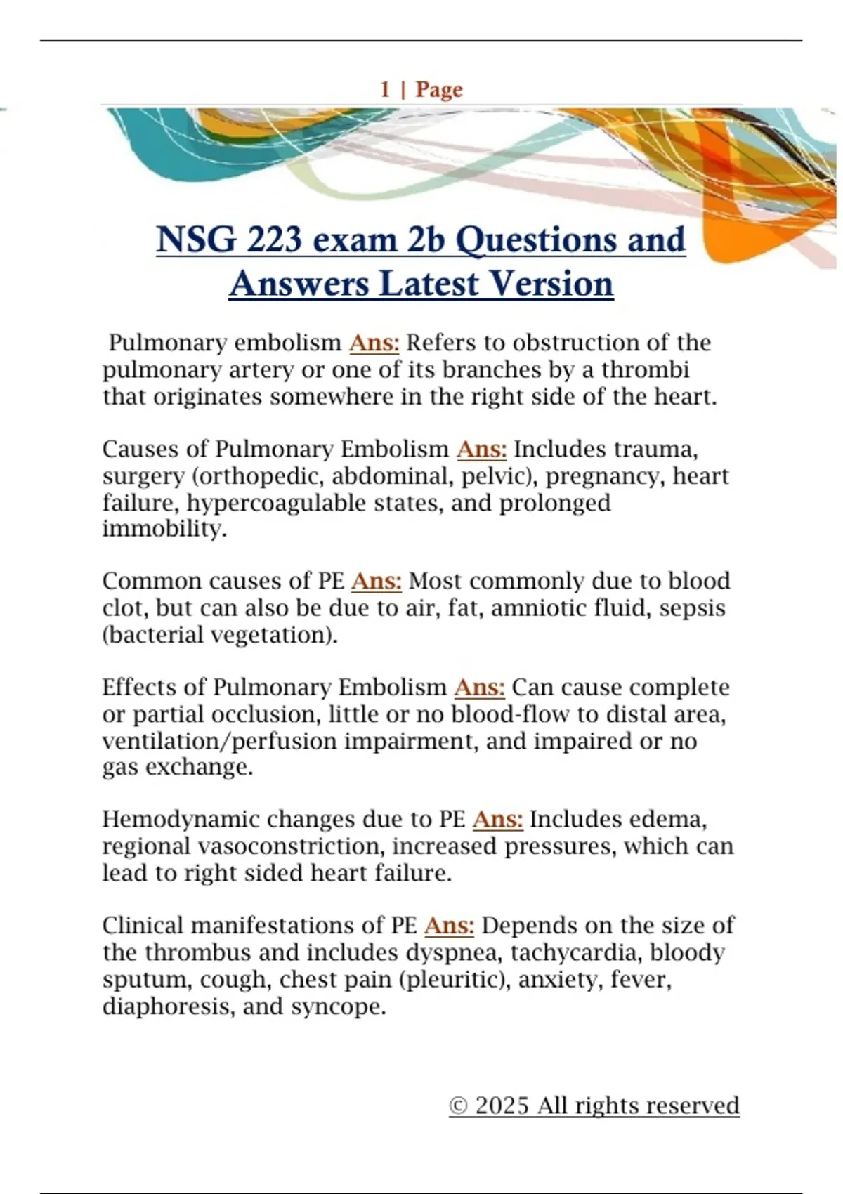 NSG 223 exam 2b Questions and Answers Latest Version