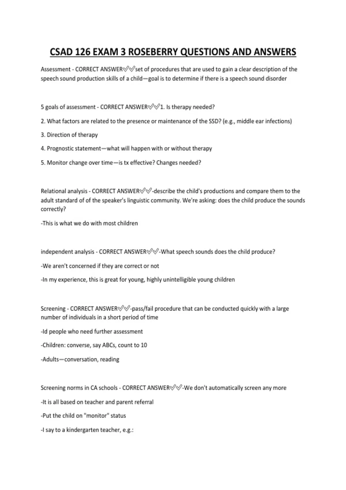 5 goals of assessment - CORRECT ANSWER✅✅1. Is therapy needed?