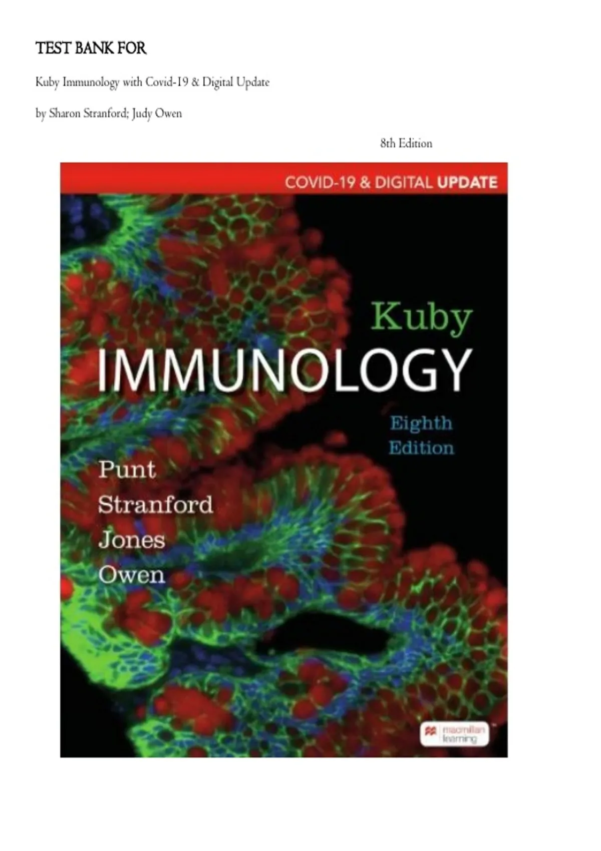 , (Kuby Immunology Covid-19 Digital Update, 8e Jenni Punt, Sharon Stranford, Patricia Jones, Judy Owen) (Test Bank Latest