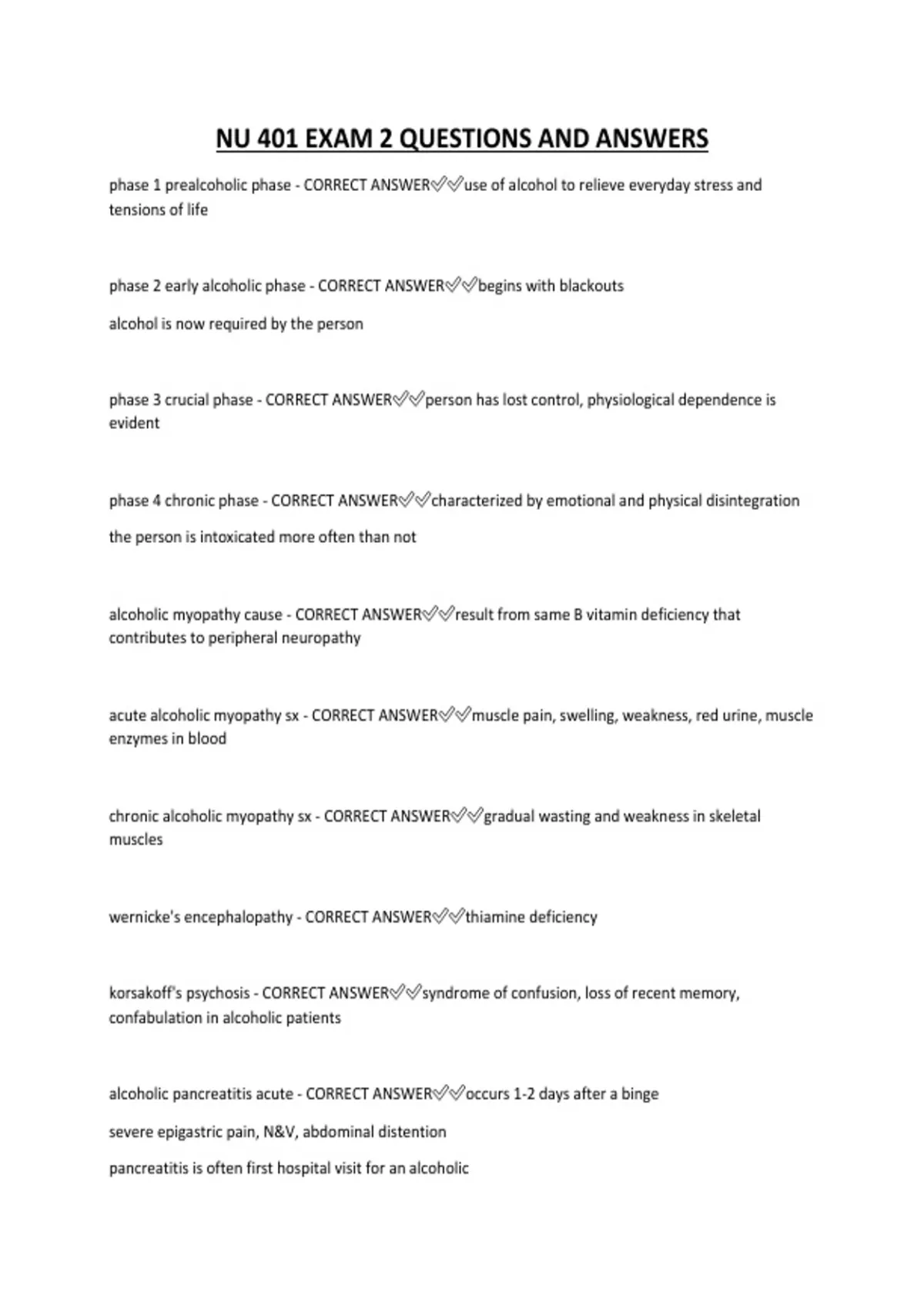NU 401 EXAM 2 QUESTIONS AND ANSWERS