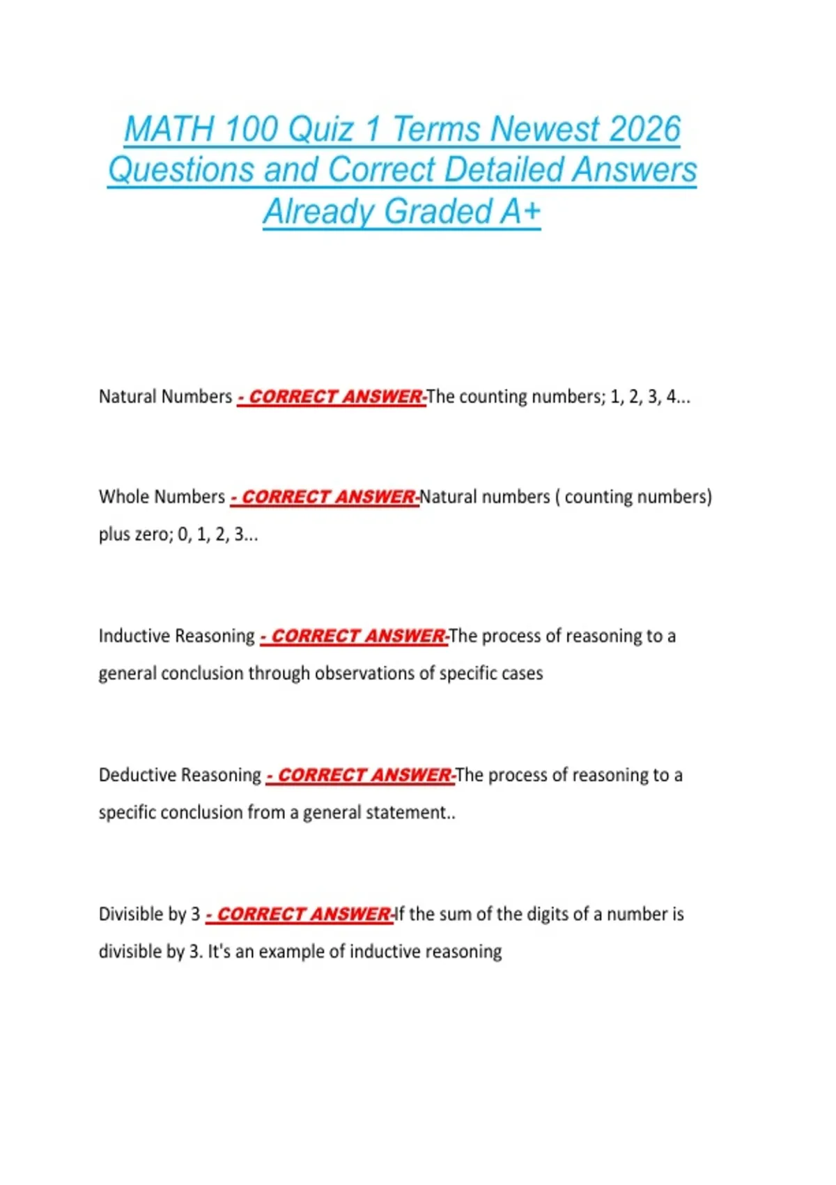 Whole Numbers - CORRECT ANSWER-Natural numbers ( counting numbers)