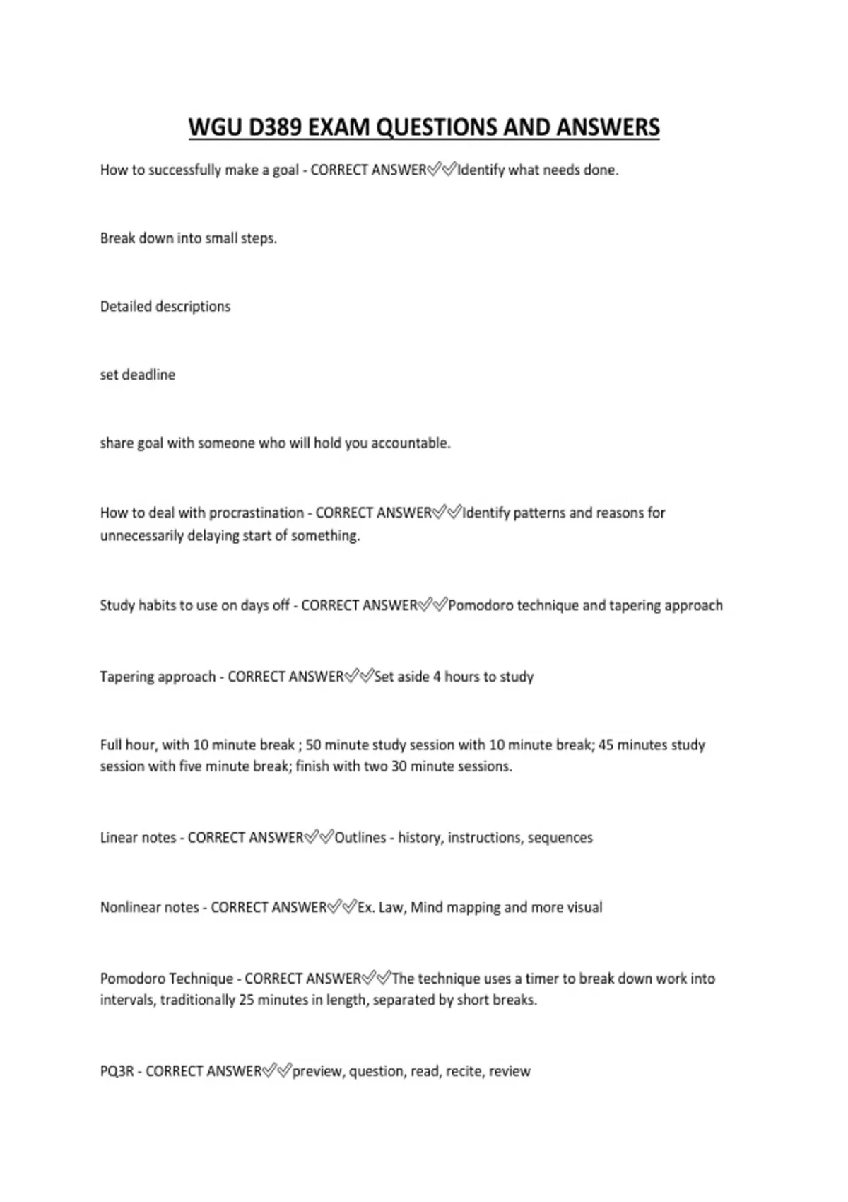 WGU D389 EXAM QUESTIONS AND ANSWERS