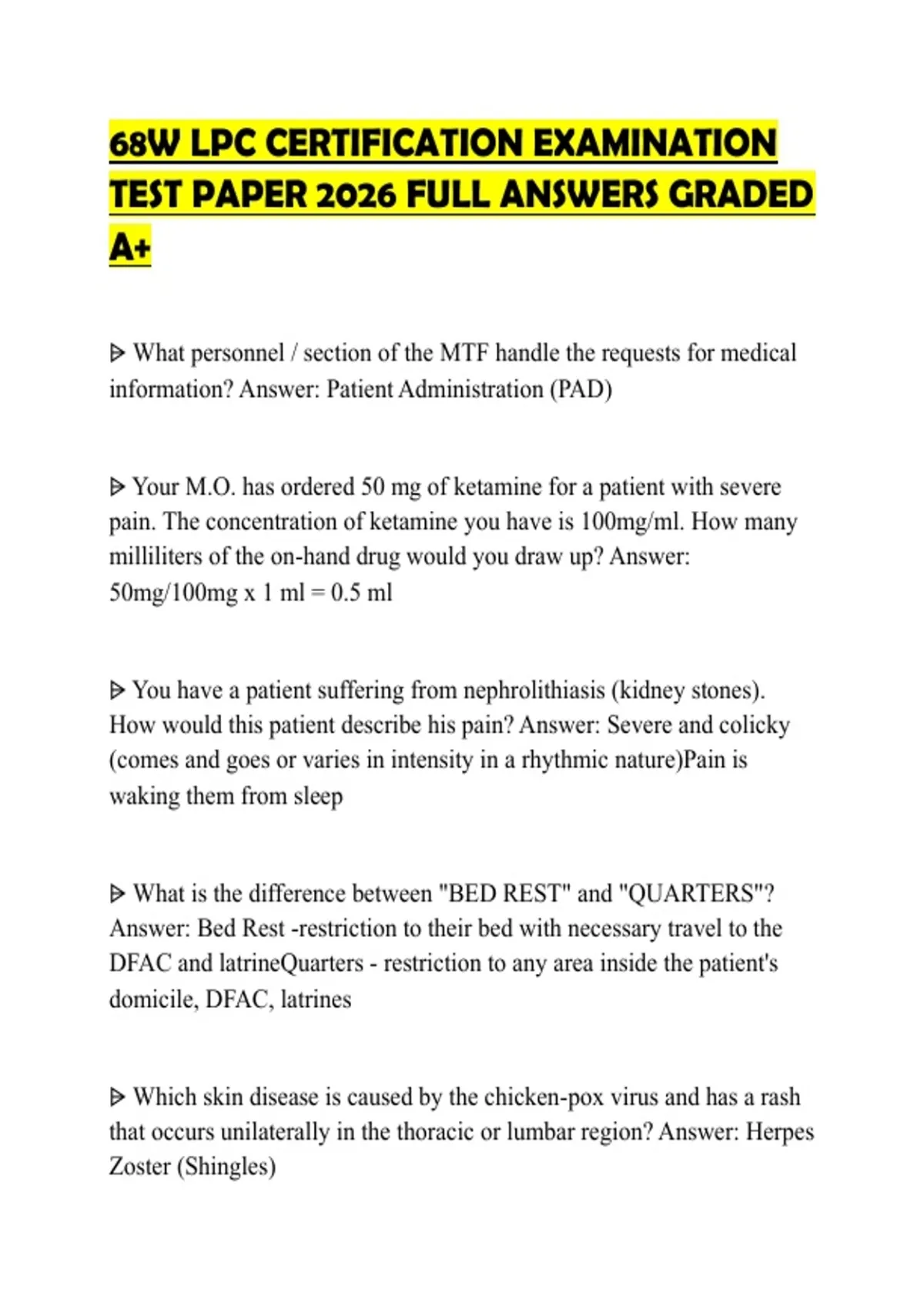 68W LPC CERTIFICATION EXAMINATION TEST PAPER 2026 FULL ANSWERS GRADED A+