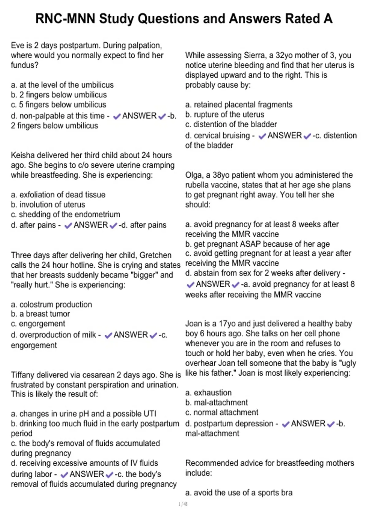that her breasts suddenly became "bigger" and d. abstain from sex for 2 weeks after delivery -