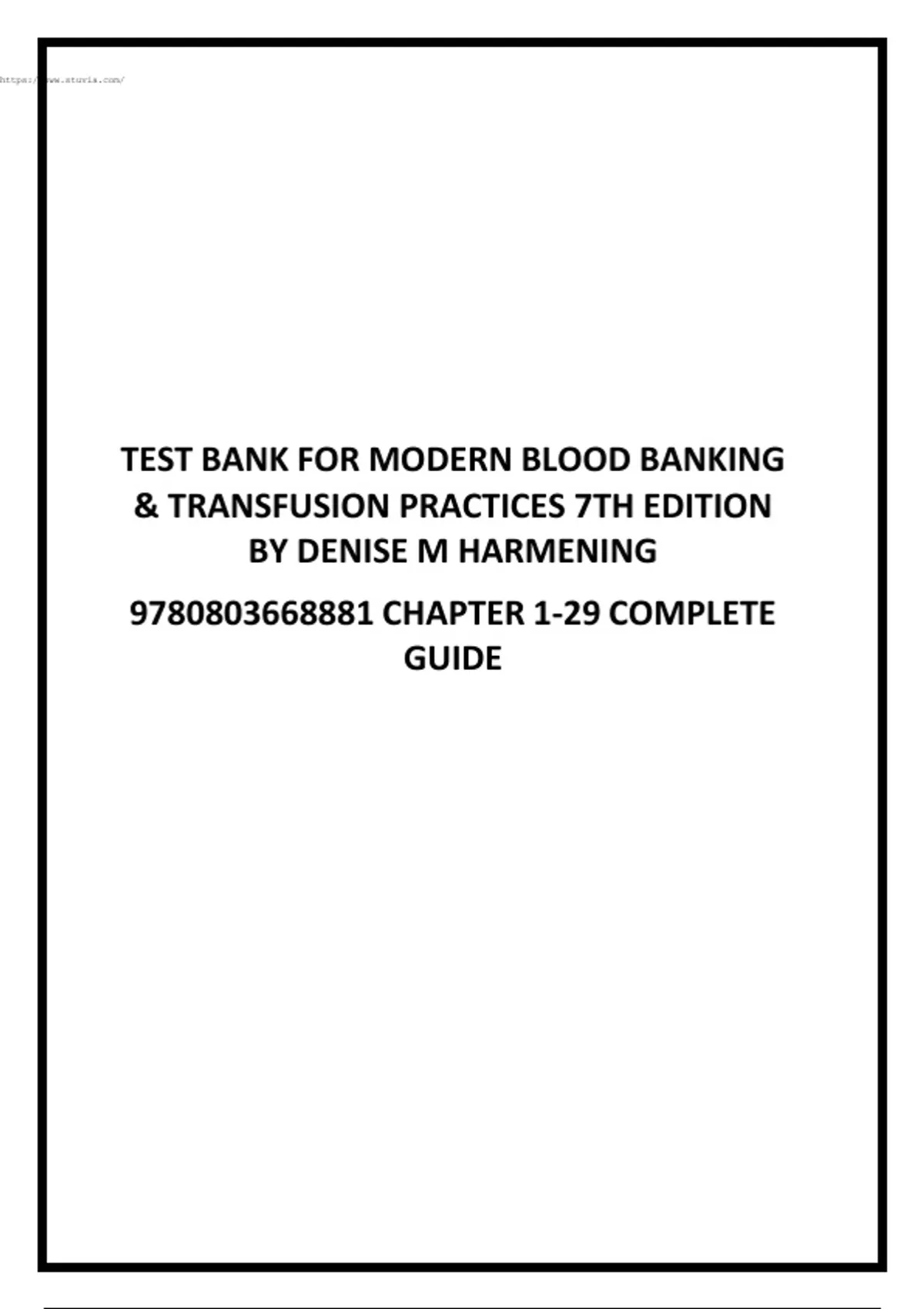 TEST BANK FOR MODERN BLOOD BANKING