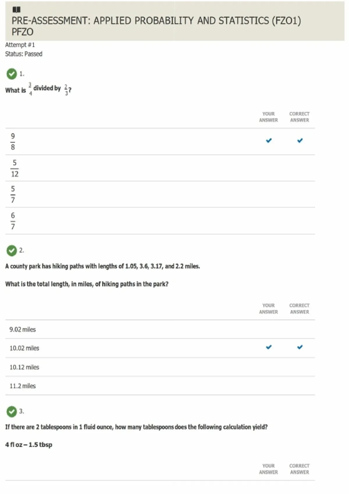 Master the WGU C955 Applied Probability and Statistics objective assessment with this comprehensive 2026 pre-assessment (FZO1) resource. This document provides a complete collection of practice questions and verified correct answers, covering fundamental to advanced statistical concepts required for the Western Governors University curriculum. Detailed content includes basic arithmetic operations with fractions, solving linear equations, and interpreting complex data sets. Students will find in-depth practice on probability theory, including independent events, marble-draw scenarios, and factory defect probabilities using conditional logic. The guide also emphasizes data visualization and interpretation, ensuring you can confidently navigate Venn diagrams, histograms, and frequency distributions. Whether you are struggling with algebraic expressions or calculating probability ratios, these materials provide the precise clarity and "Exemplary" level insights needed to secure an A+ grade. Accelerate your degree progress by studying with the most accurate and high-yield question bank for C955.