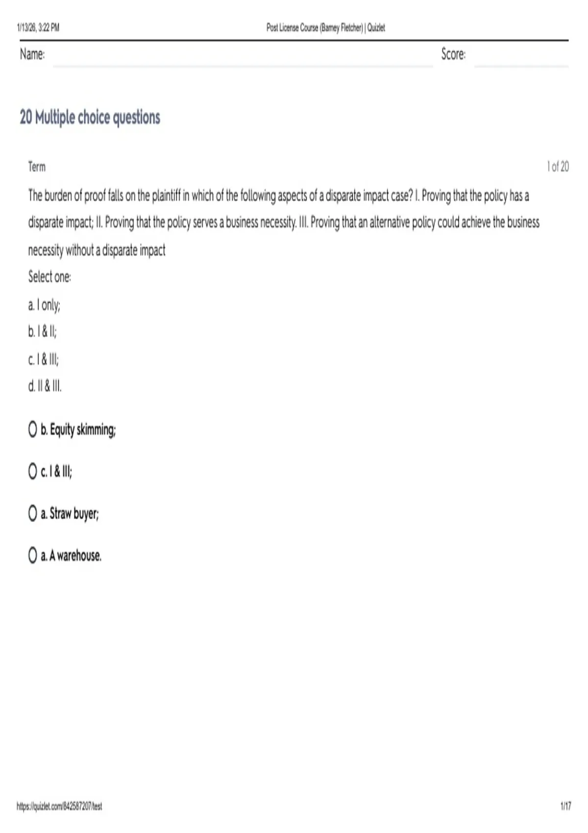 ,1/13/26, 3:22 PM Post License Course (Barney Fletcher) | Quizlet