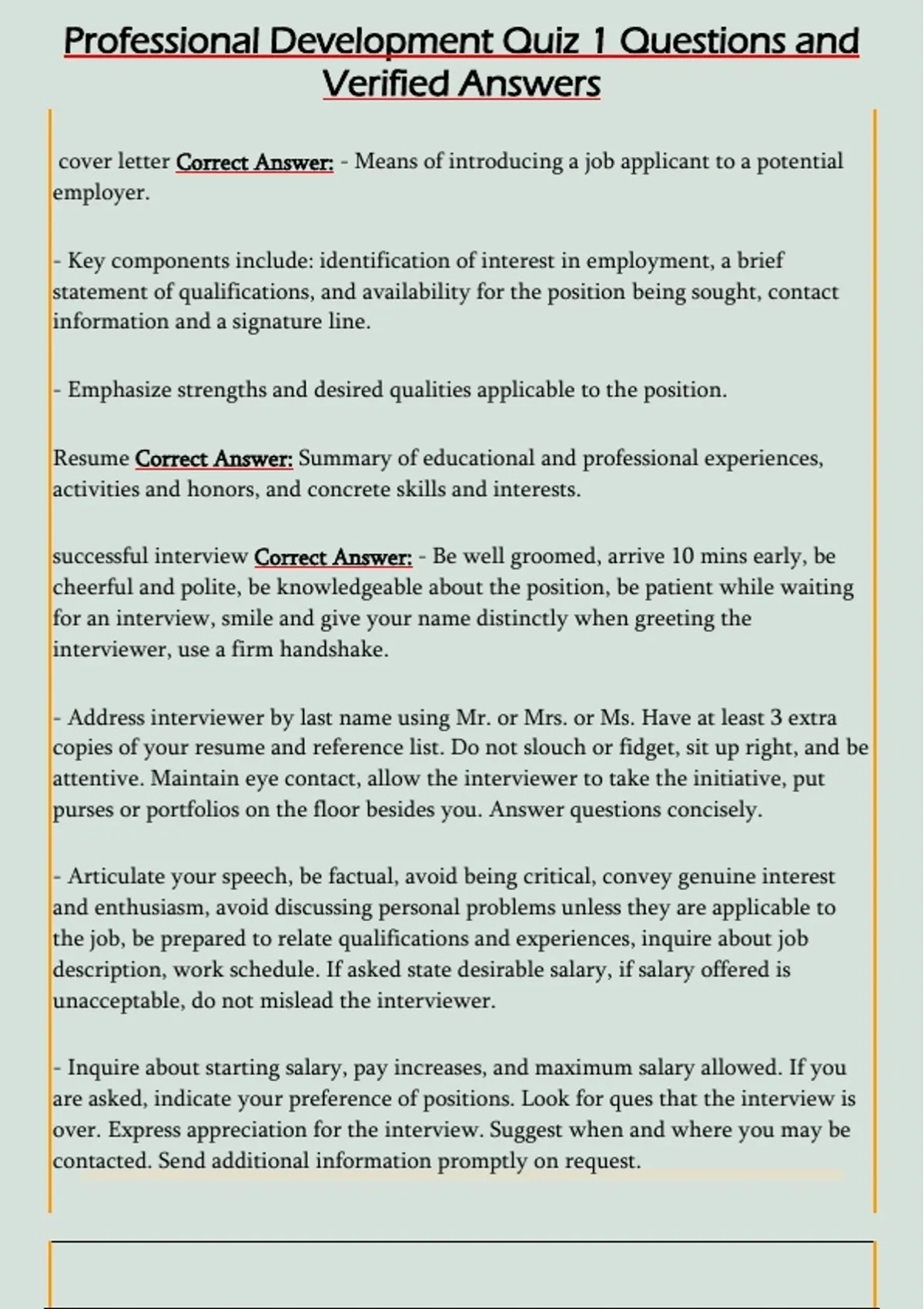 Resume Correct Answer: Summary of educational and professional experiences,