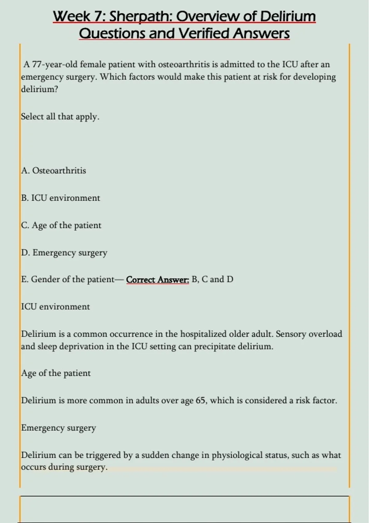 Delirium is a common occurrence in the hospitalized older adult. Sensory overload