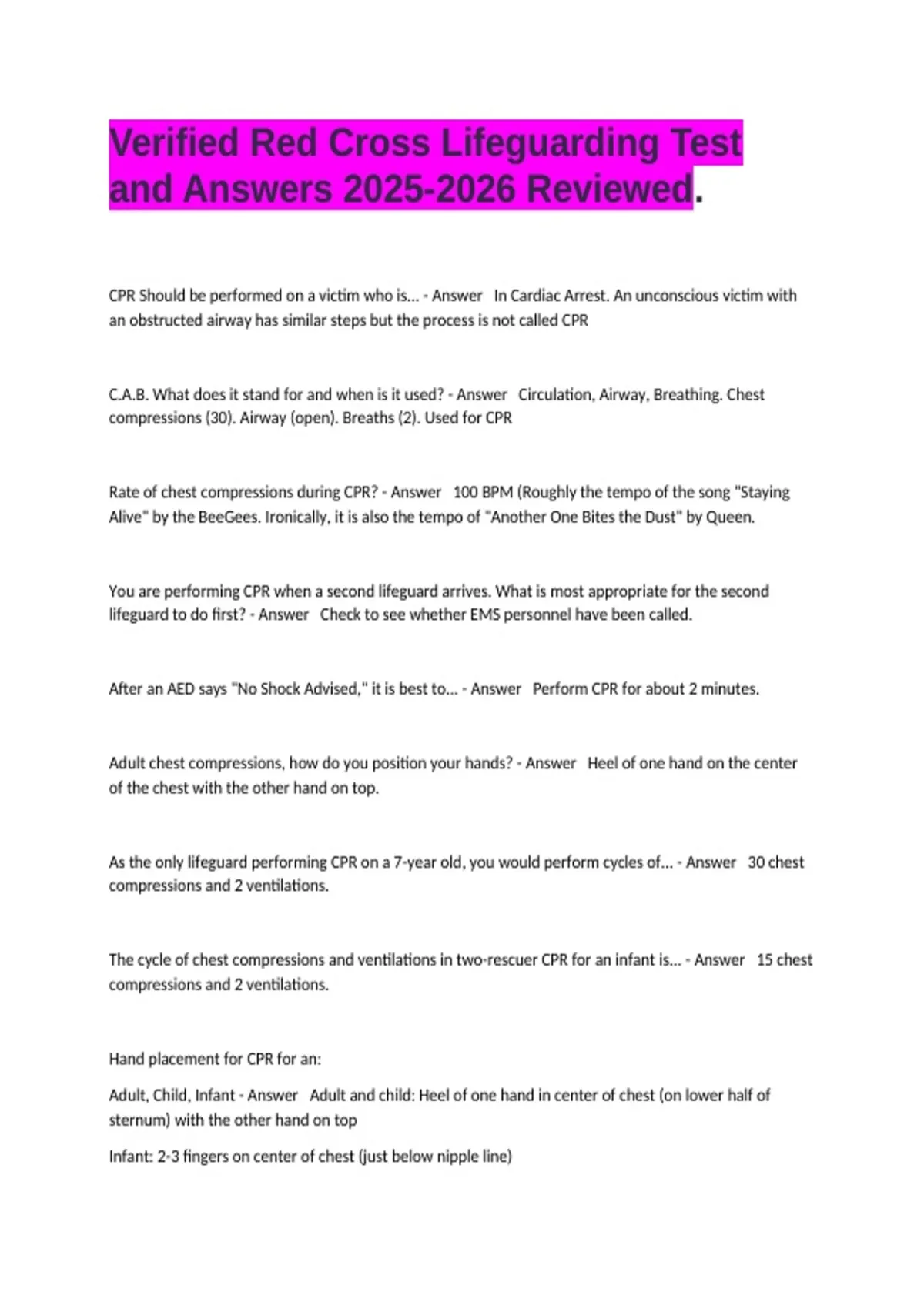 As the only lifeguard performing CPR on a 7-year old, you would perform cycles of... - Answer 30 chest