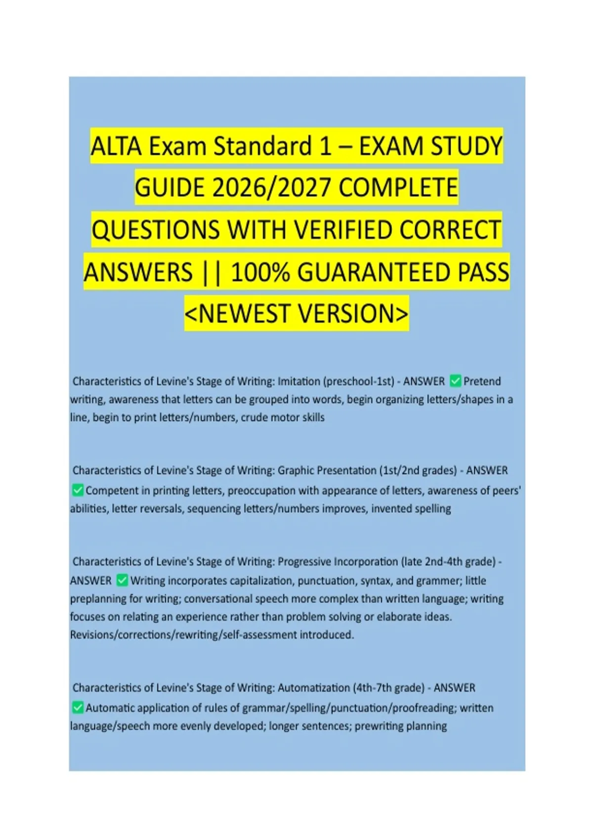 Characteristics of Levine's Stage of Writing: Graphic Presentation (1st/2nd grades) - ANSWER