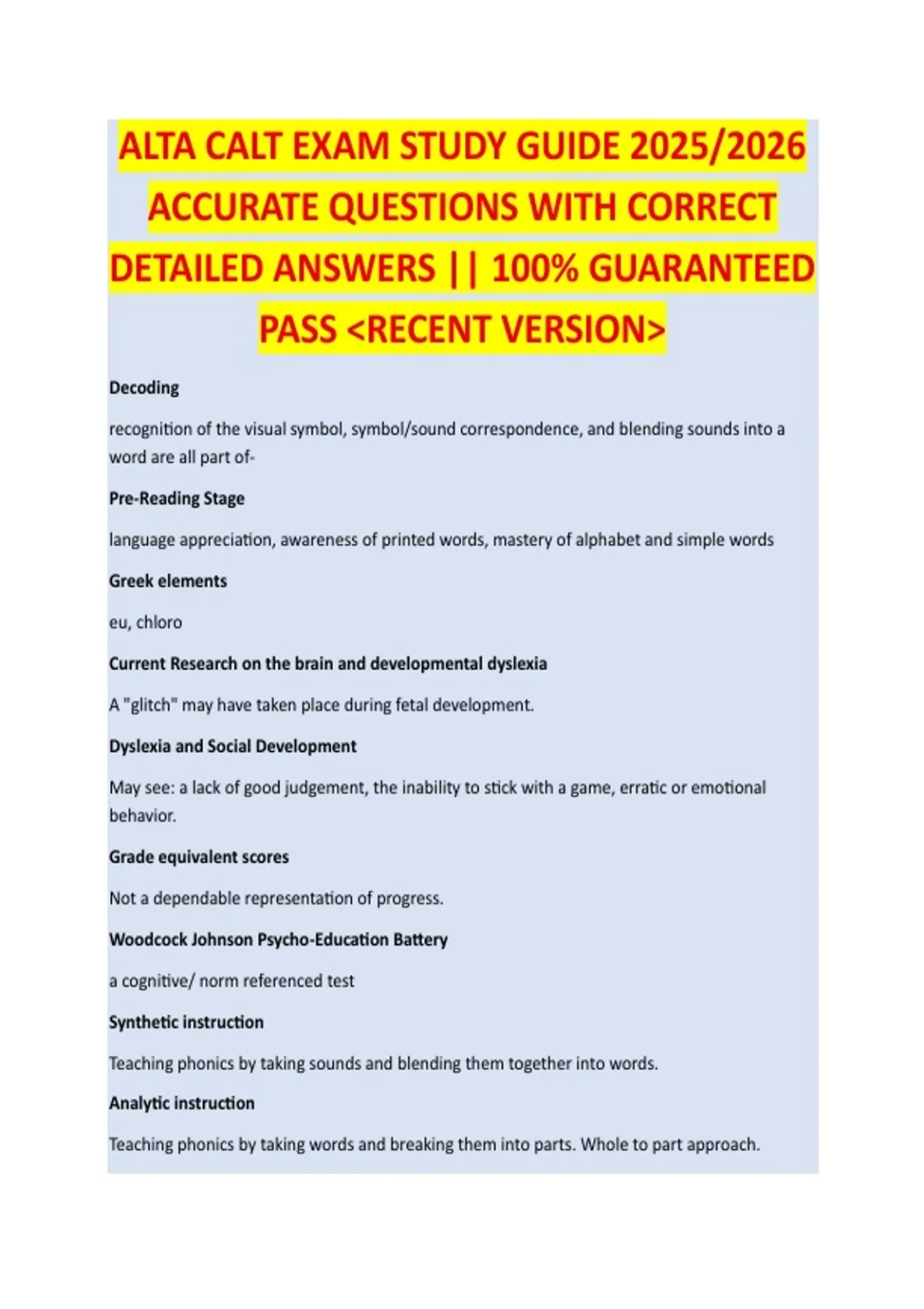 ALTA CALT EXAM STUDY GUIDE 2025/2026