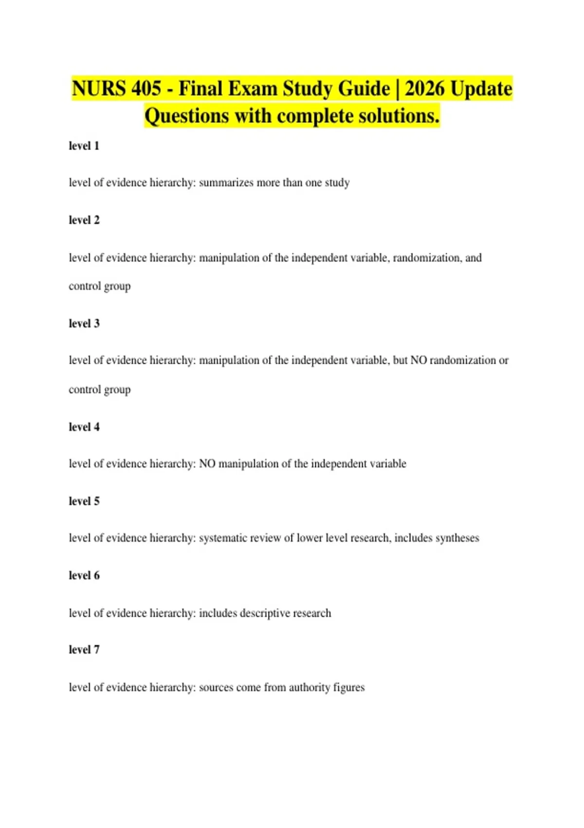 NURS 405 - Final Exam Study Guide | 2026 Update
