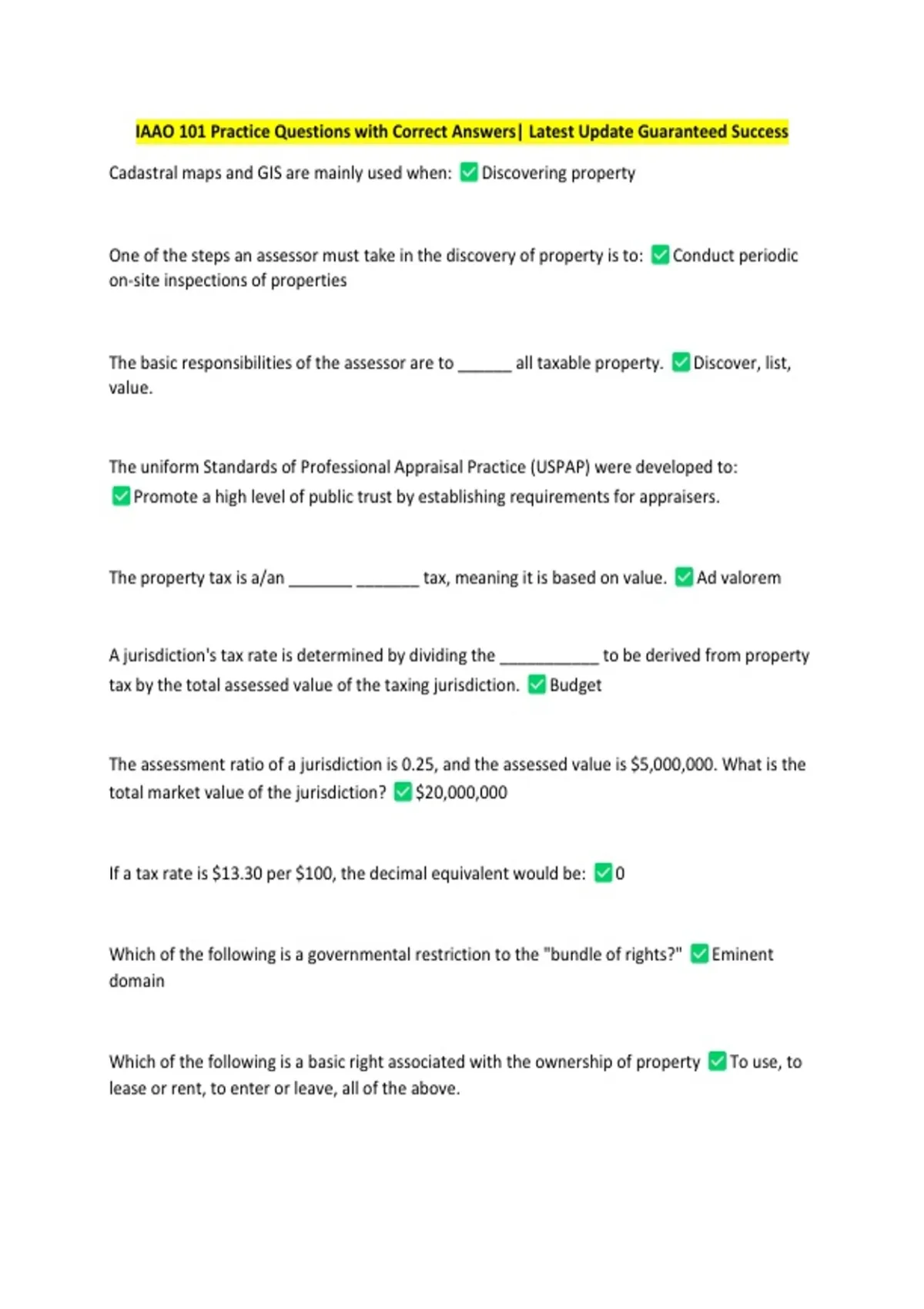 IAAO 101 Practice Questions with Correct Answers| Latest Update Guaranteed Success