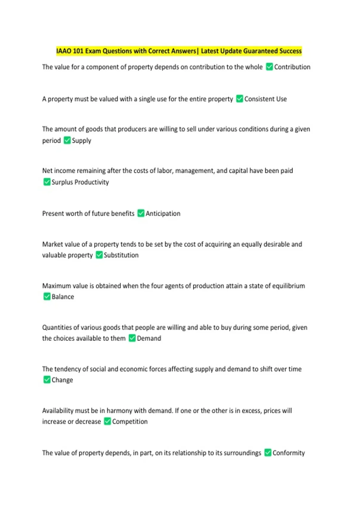 IAAO 101 Exam Questions with Correct Answers| Latest Update Guaranteed Success
