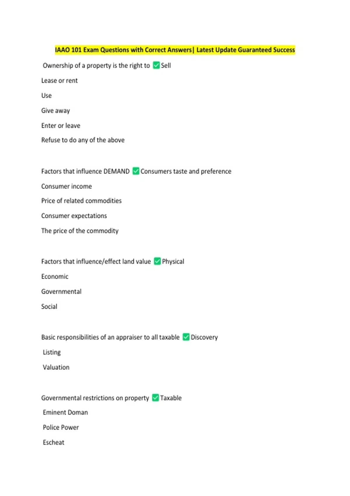 IAAO 101 Exam Questions with Correct Answers| Latest Update Guaranteed Success