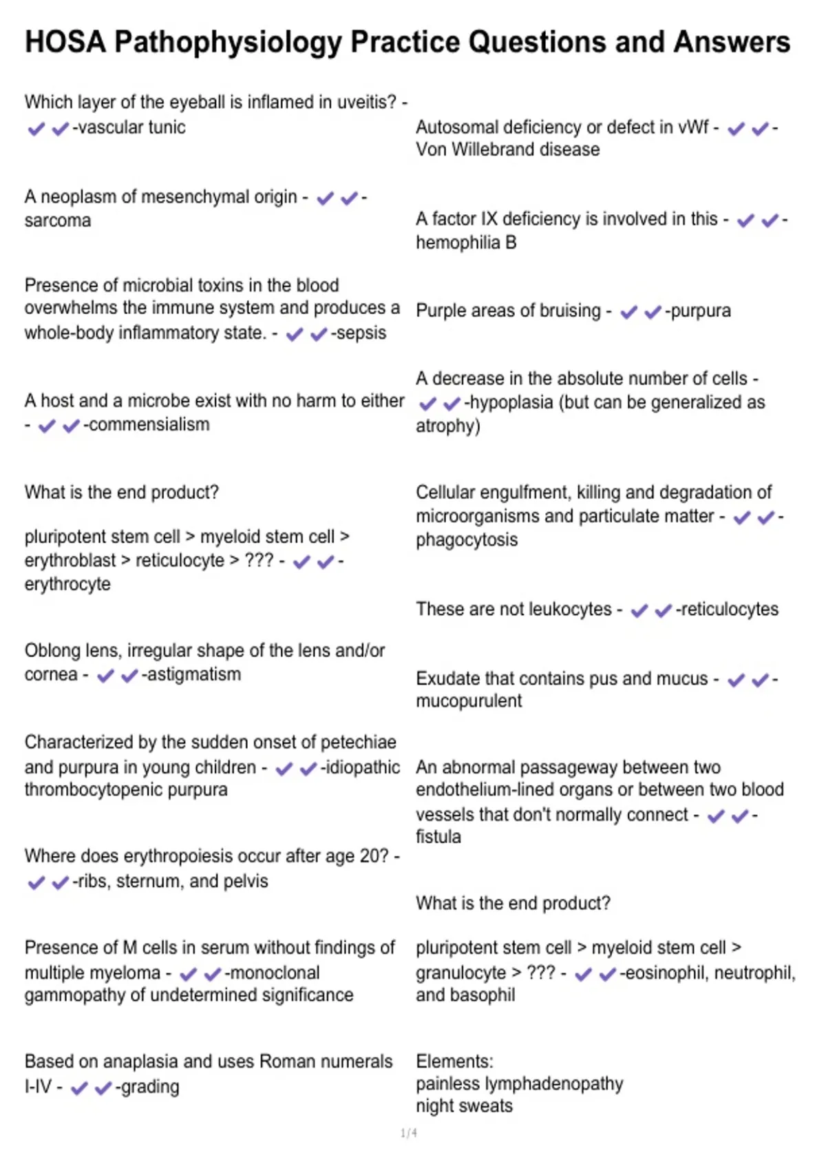 multiple myeloma - -monoclonal granulocyte > ??? - -eosinophil, neutrophil,