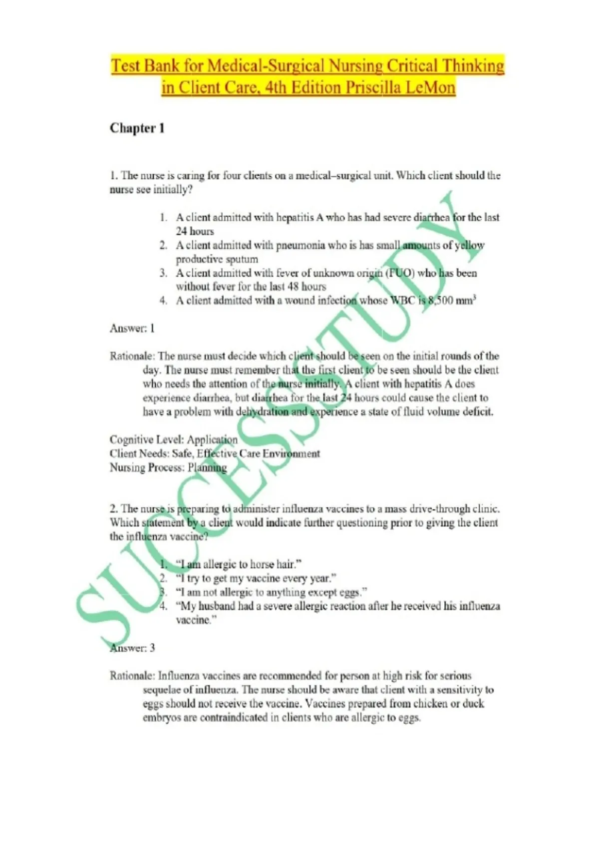 Test Bank for Medical-Surgical Nursing Critical Thinking in Client Care, 4th Edition Priscilla LeMon..