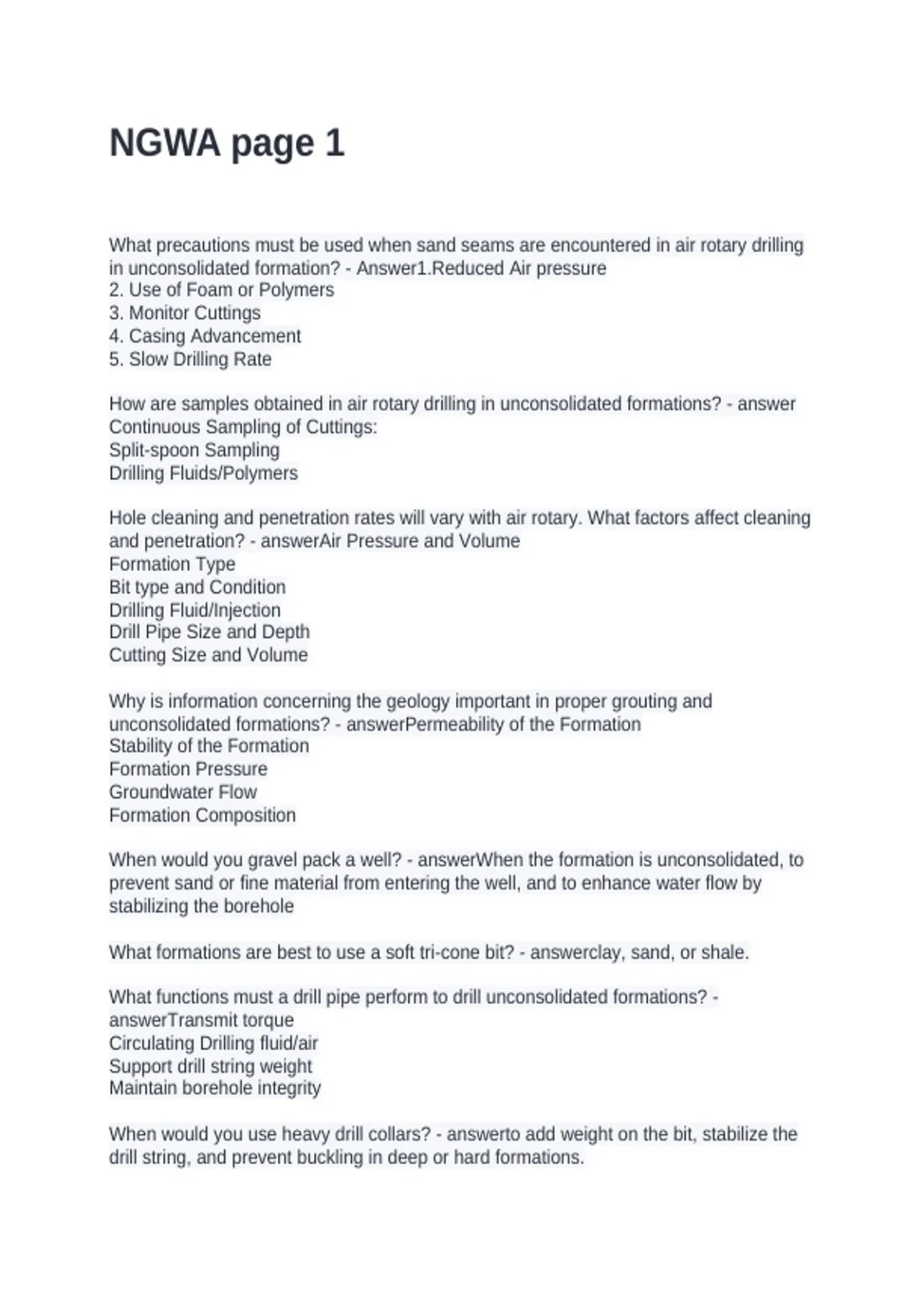 in unconsolidated formation? - Answer1.Reduced Air pressure