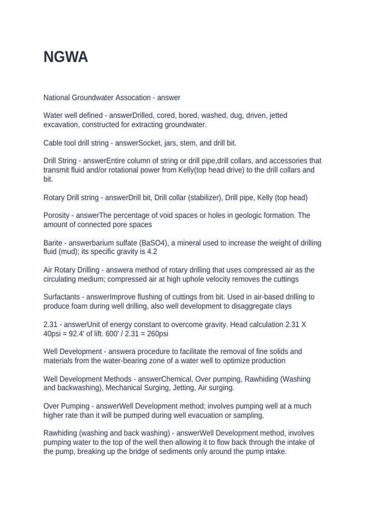 National Groundwater Assocation - answer
