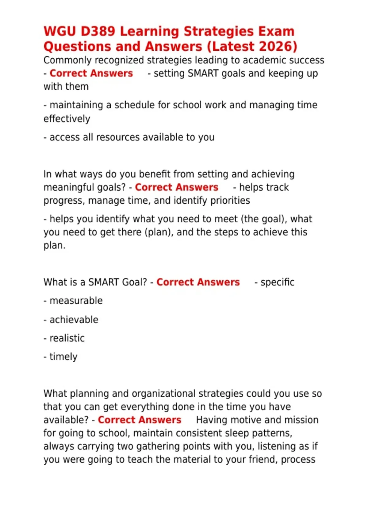 - Correct Answers ✅- setting SMART goals and keeping up