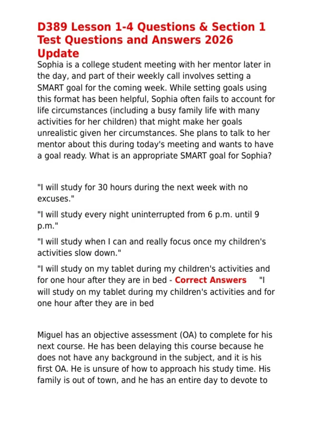 D389 Lesson 1-4 Questions & Section 1 Test Questions and Answers 2026 Update.