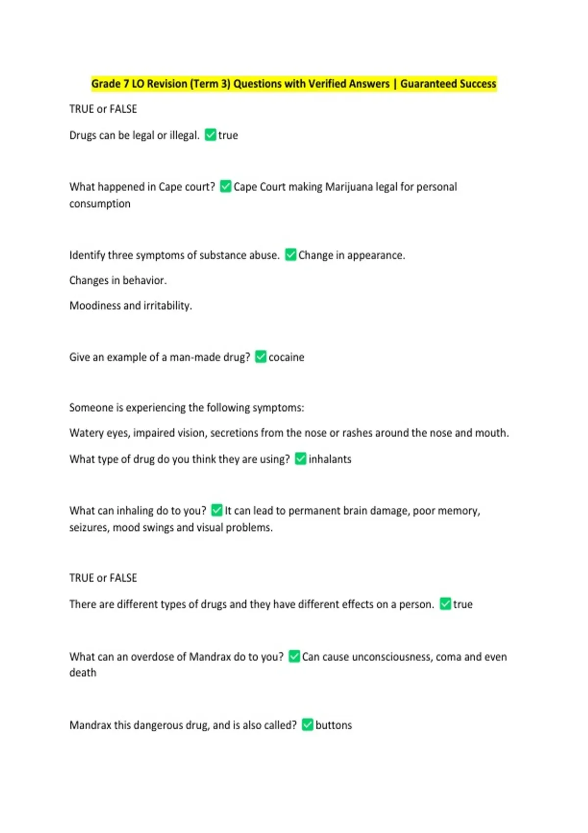Grade 7 LO Revision (Term 3) Questions with Verified Answers | Guaranteed Success