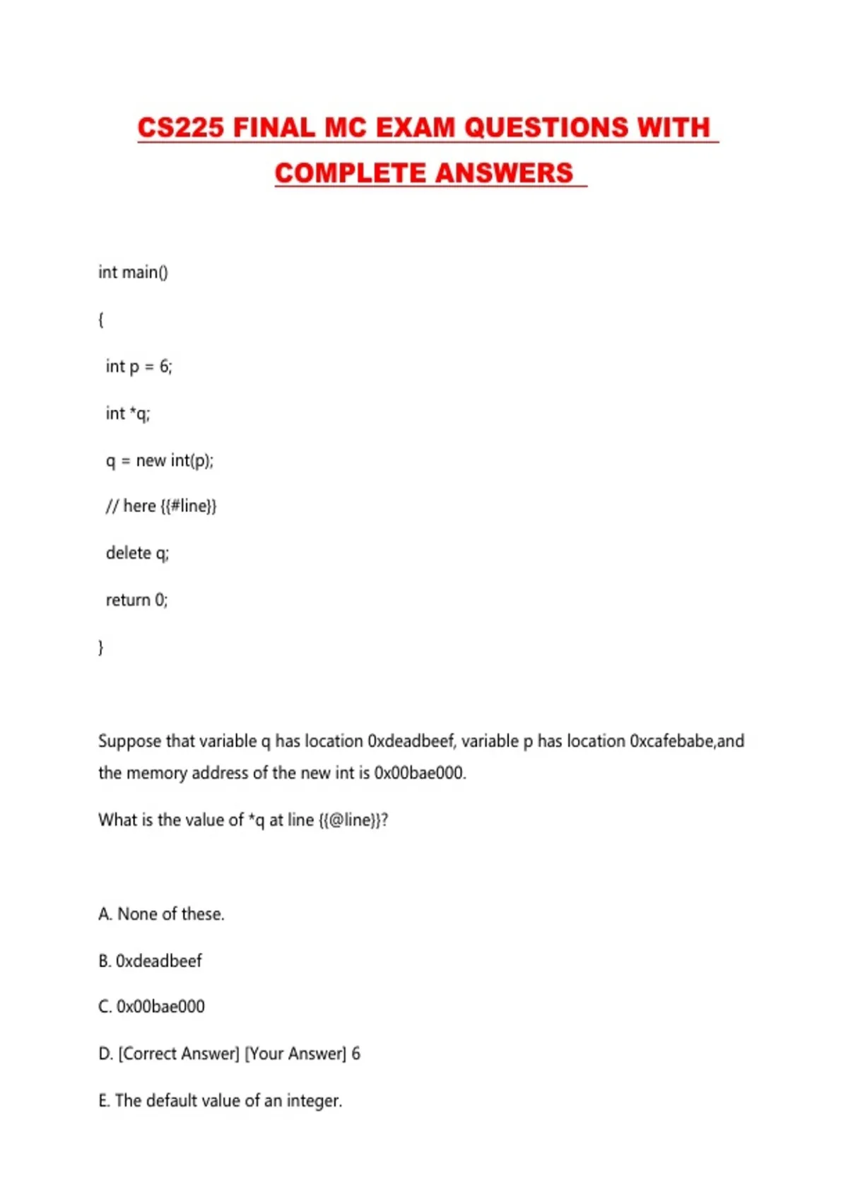 CS225 FINAL MC EXAM QUESTIONS WITH COMPLETE ANSWERS ...