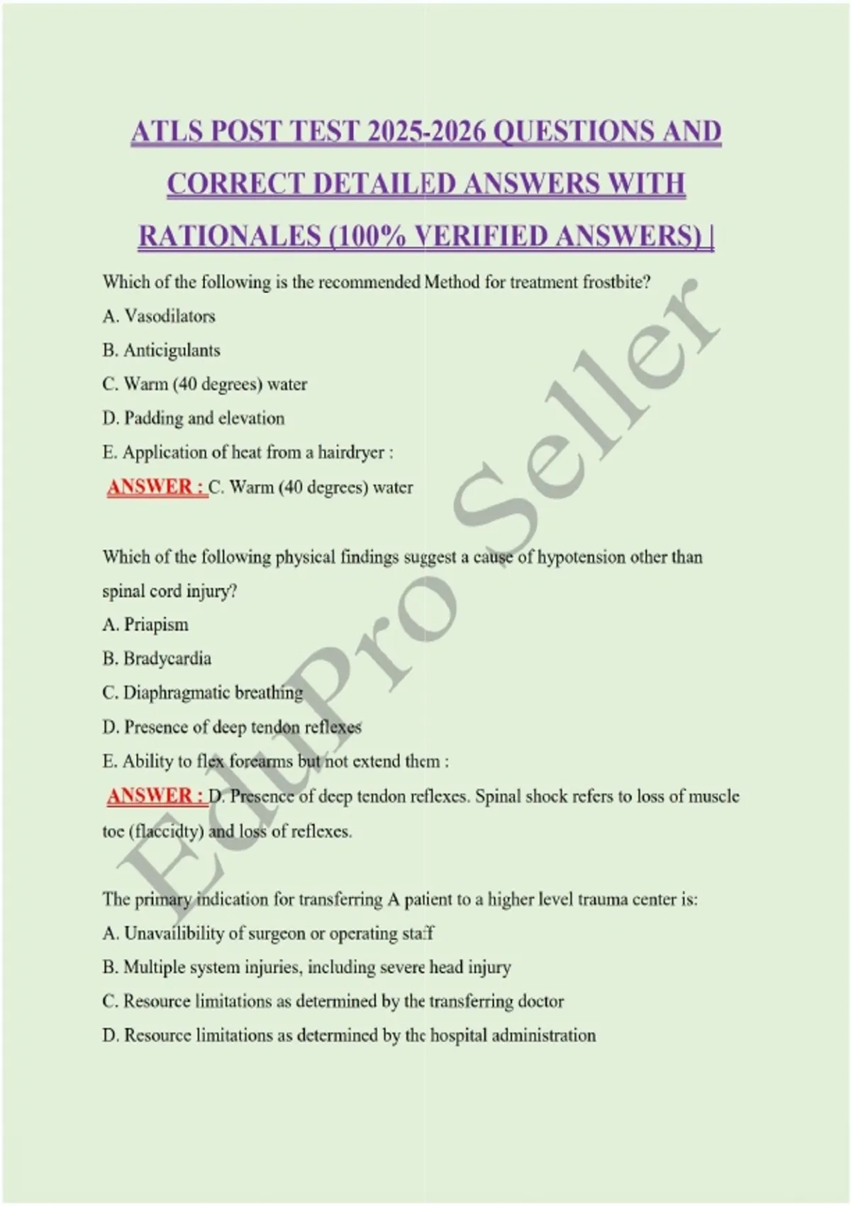 ATLS POST TEST QUESTIONS AND CORRECT DETAILED ANSWERS WITH RATIONALES (100% VERIFIED ANSWERS) |